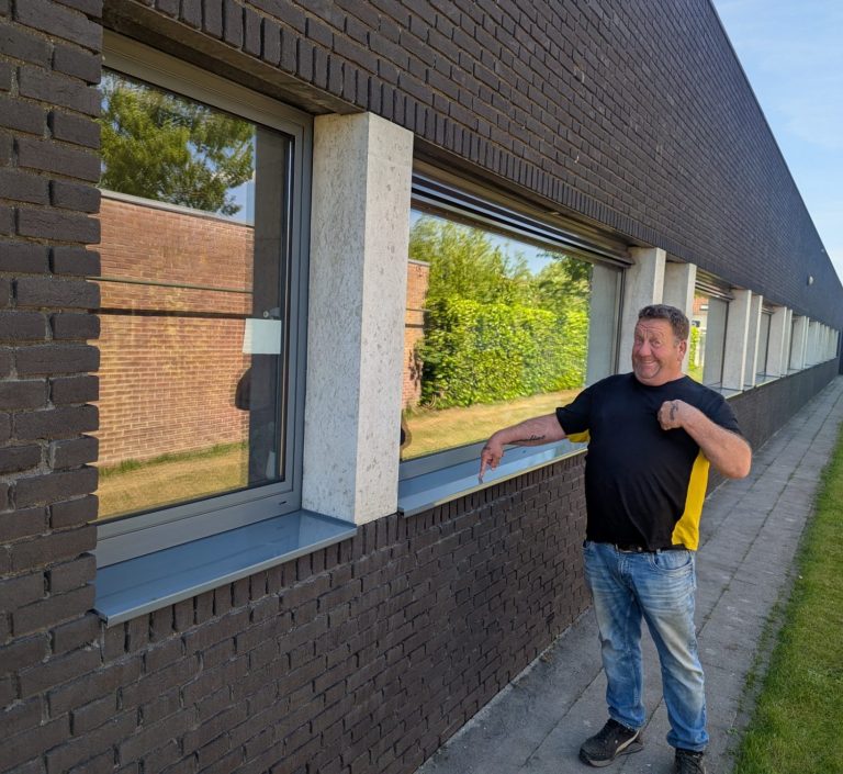 Op deze foto ziet men dat de waterslag is behandeld maar de raamstijlen nog niet.